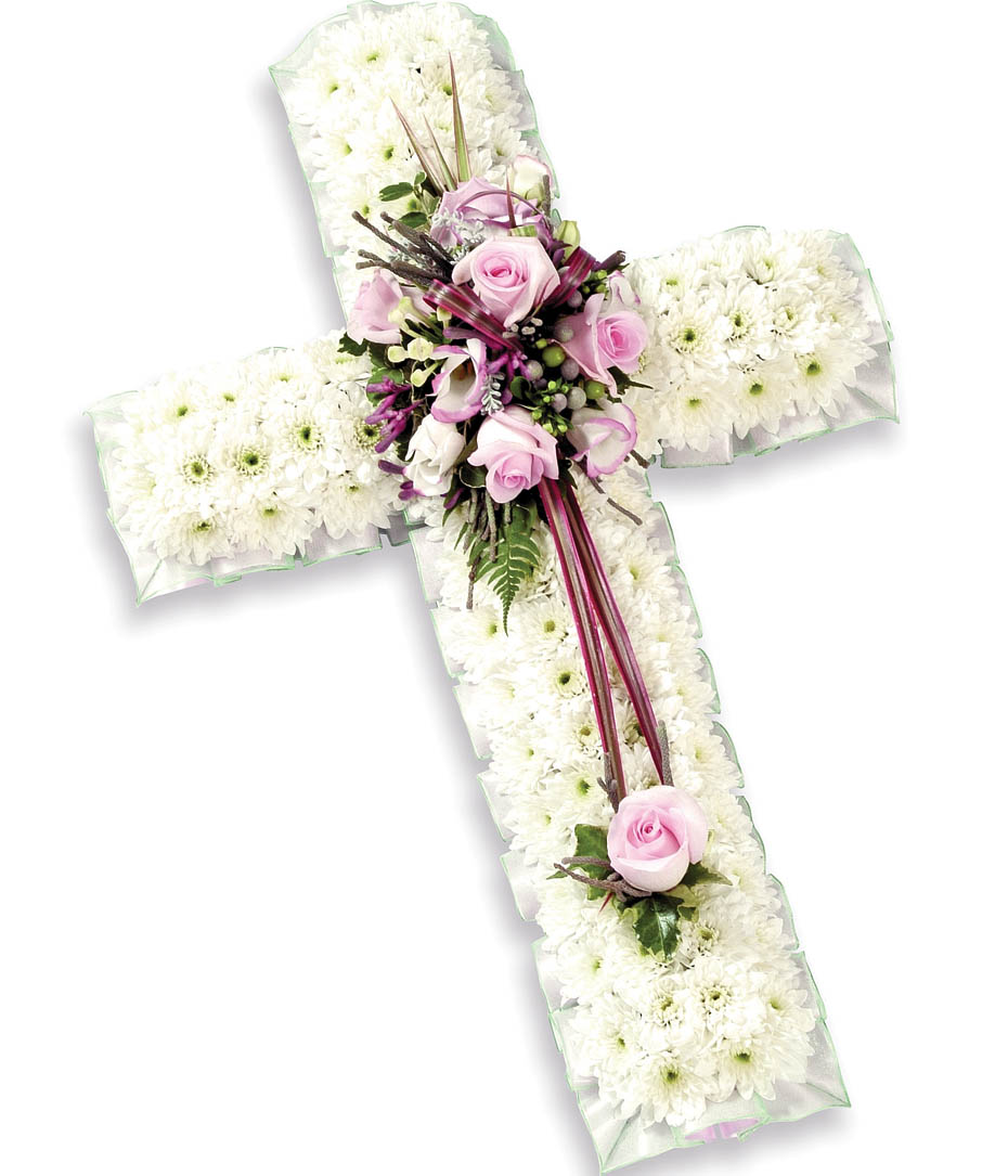 Based cross of Chrysanthemum with a spray of pink roses and Eustoma with complementary foliage.